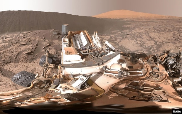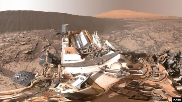 این تصویر ۳۶۰ درجهای از ۵۷ تصویری که توسط کاوشگر مریخ در تاریخ ۱۹ ژانویه امسال (اوایل دی ماه) گرفته شده تشکیل شده است. این تصاویر توسط یکی از «دست» های این کاوشگر که یک «چوب سلفیگیر» به آن وصل بوده گرفته شدهاند. این عکسها از بخش «بگنالد دون» که در بخش شمال غربی کوه «شارپ» در مریخ قرار گرفته است به زمین فرستاده شدهاند.