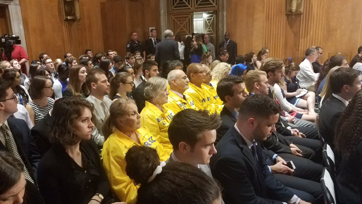 .@SenateDems #IranianAmericans at Sec. #Tillerson Senate Hearing, calling4 #BlacklistIRGC and address #1988Massacre in #Iran @SenJohnMcCain