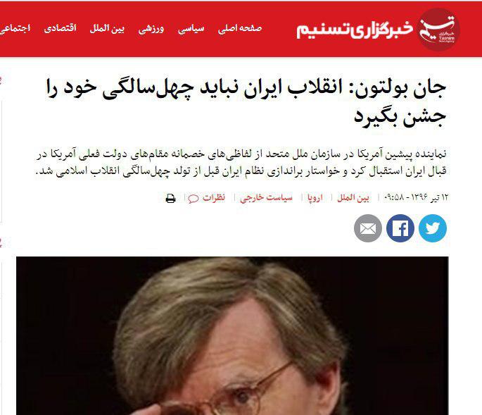 جان بولتون رسما مشاور شورای امنیت ملی آمریکا شد. تحلیلگران این تحول در دولت آمریکا را به مثابه سمت و سوی جدی آمریکا به سوی تغییر رژیم آخوندی تفسیر کردن کسی که گفت رژیم ایران نباید به چهل سالگی برسد.