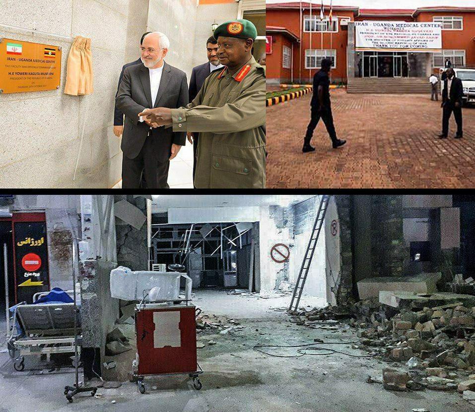 Above you see @JZarif at a ceremony inaugurating a hospital in Uganda built with Iranian money. Below is a hospital in Sarpol Zahab (western #Iran) badly damaged in the Nov 2017 earthquake. Solution: #IranRegimeChange #FreeIran2018