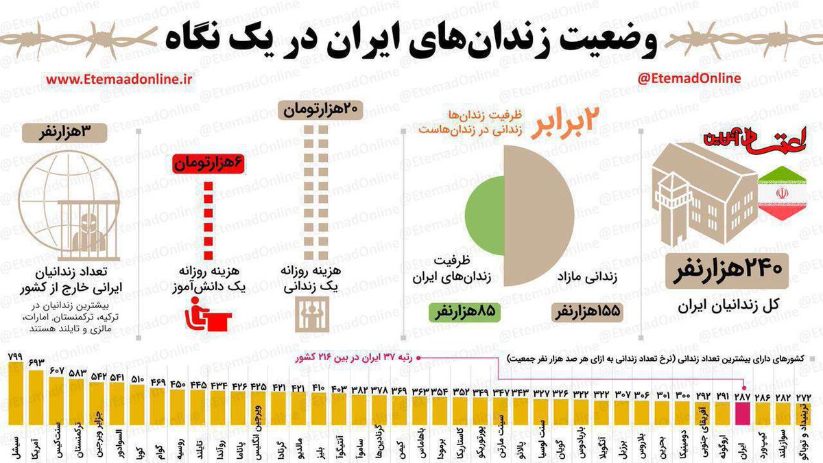 وضعیت زندانهای #ایران در یک نگاه منبع اعتماد آنلاین (حکومتی)