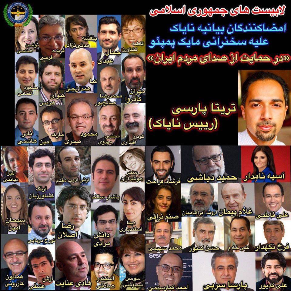 لیست اسامی امضاکنندگان بیانیه نایاک و لابیستهای رژیم آخوندی، علیه سخنرانی وزیر خارجه آمریکا «مایک پامپئو» در جمع ایرانیان برانداز بخش برون مرزی و ماله کش سپاه قدس #IranRegimeChange
