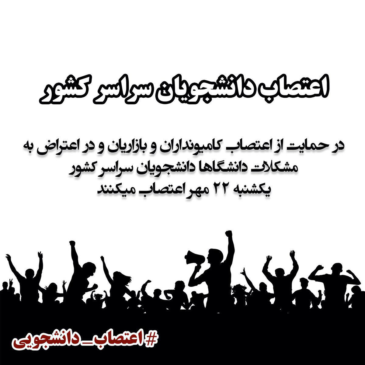فراخوان به اعتصاب #دانشجویان سراسر کشور یکشنبه ۲۲ مهر #ايران #اعتصاب_سراسری #براندازم