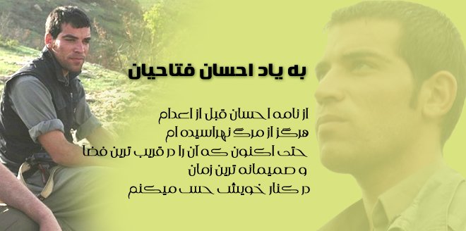 #احسان_فتاحیان قبل از #اعدام گفت:هرگز ازمرگ نهراسیدم,حتی اکنون که آن را در قریب ترین زمان در کنار خویش حس میکنم. آن را میبویم وبازش میشناسم,چراکه آشناییست دیرینه به این ملت وسرزمین.مایی که ازسوی " آنان"به مرگ محکوم شدهایم درطلب یافتن یک جهان بهتر وعاری از حق کشی در تلاش بودهایم