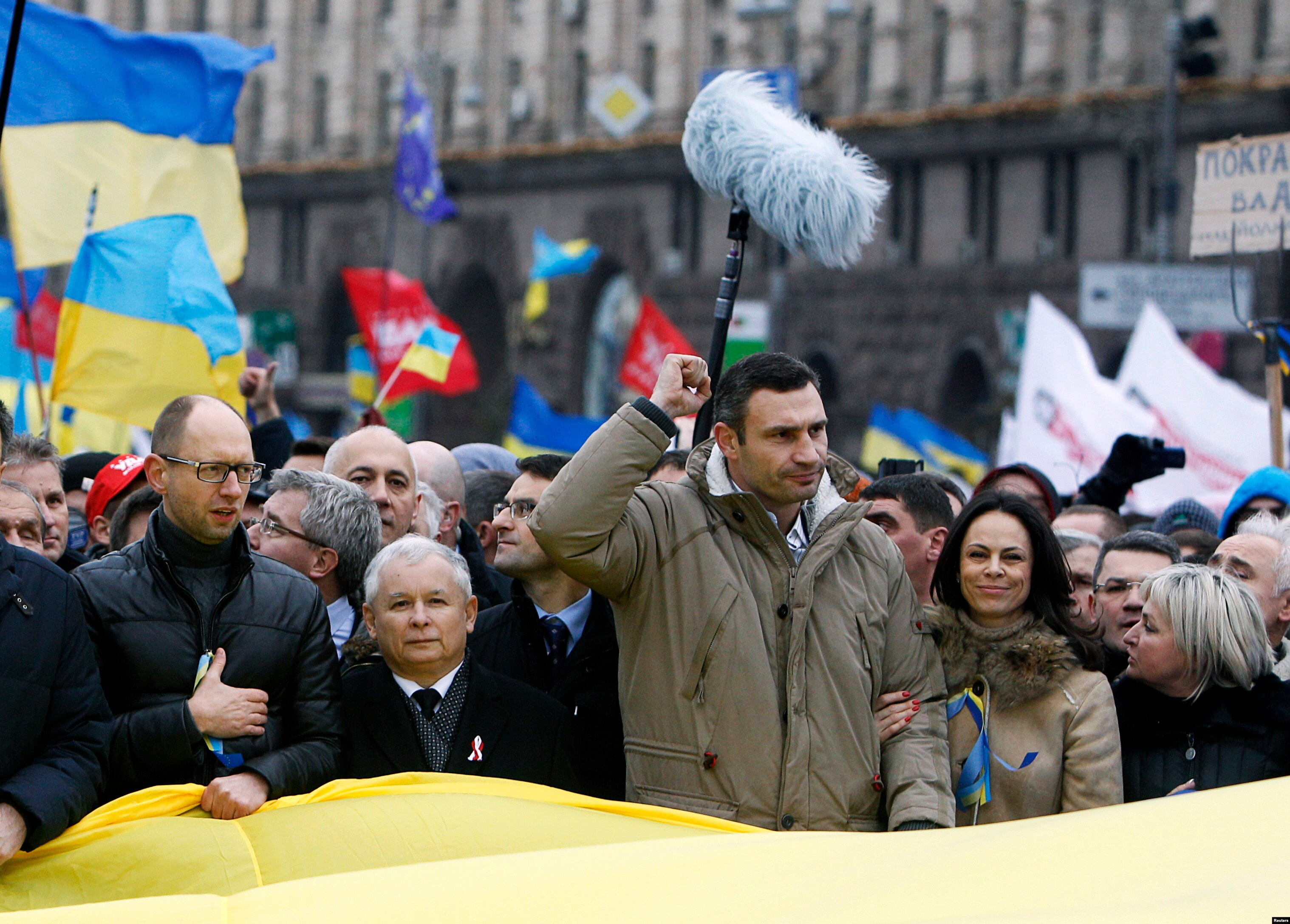 يوليا تيموشنکو، نخست وزير پيشين اوکراين و رقيب سياسی يانوکوويچ که آزادی وی از جمله شرايط اتحاديه اروپا برای امضای معاهده تجاری با کيف است، از مخالفان خواسته است که به نبرد خود ادامه دهند.